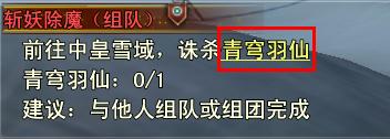 通过自动寻路,我们很快就见到了这次的诛杀对象。这次任务正常是需要组队进行(如图3),因为青穹羽仙对于40级的玩家来说过于强大,想凭单人过关是肯定不行的,反正目前我是办不到。